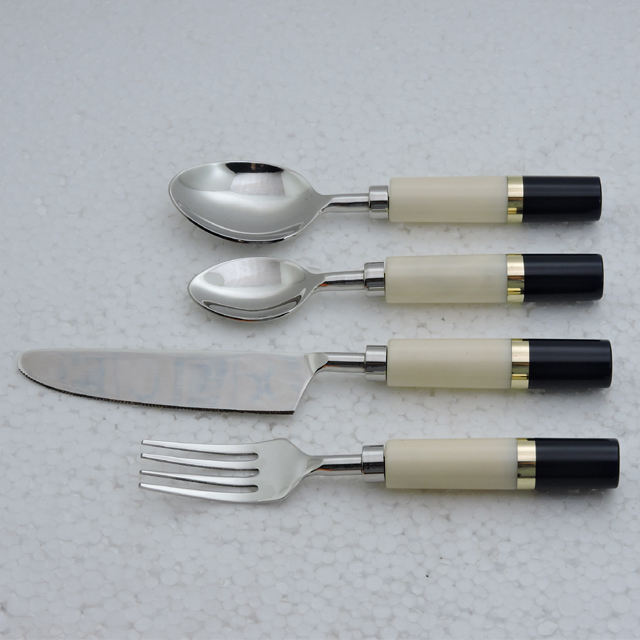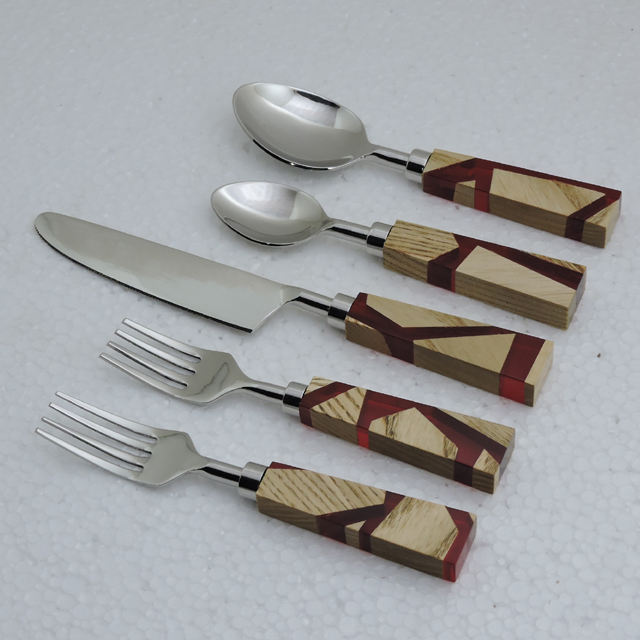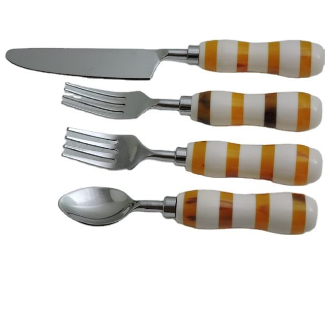 Poignée en pierre de marbre avec émail imprimé et acier inoxydable avec ensemble de couverts 5 pièces plaqué argent ensemble de couverts ensembles de vaisselle