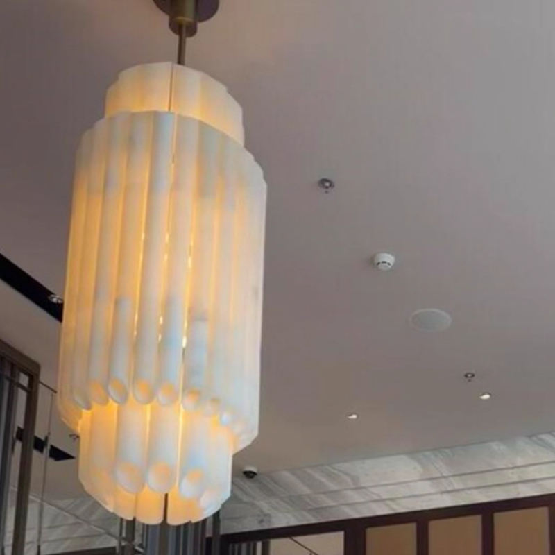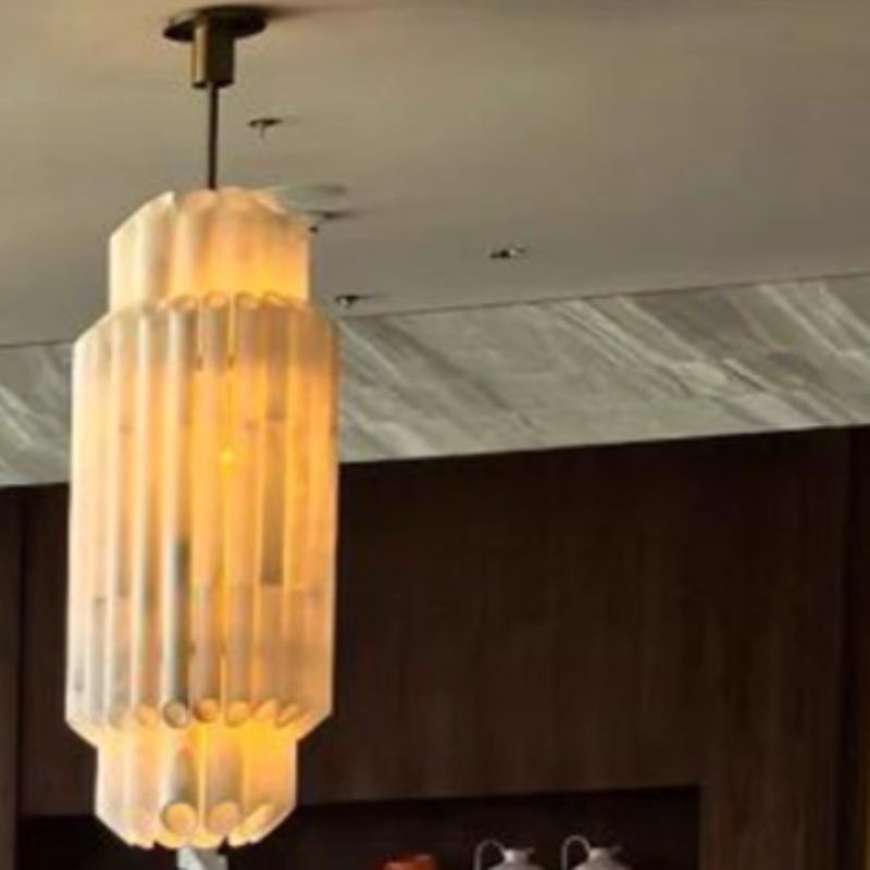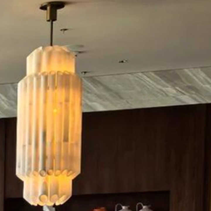 Marbre Épais Bambou Tube Colonne Colonne Lustre Lumières Décoration Clubhouse Bar Comptoir Restaurant Marbre Pendentif Lampe