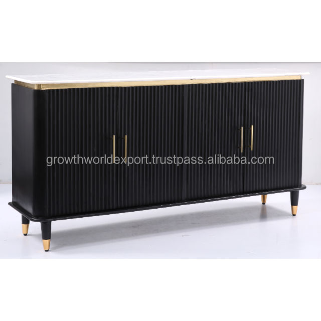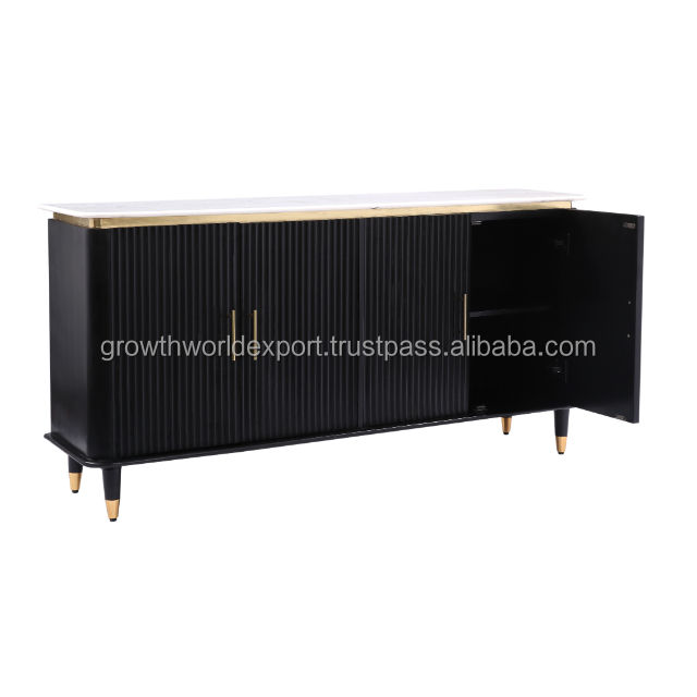 Nom du produit:Buffet en bois de mangue avec 4 portes et combo en laiton