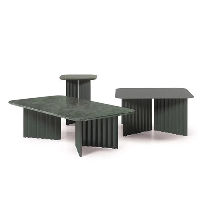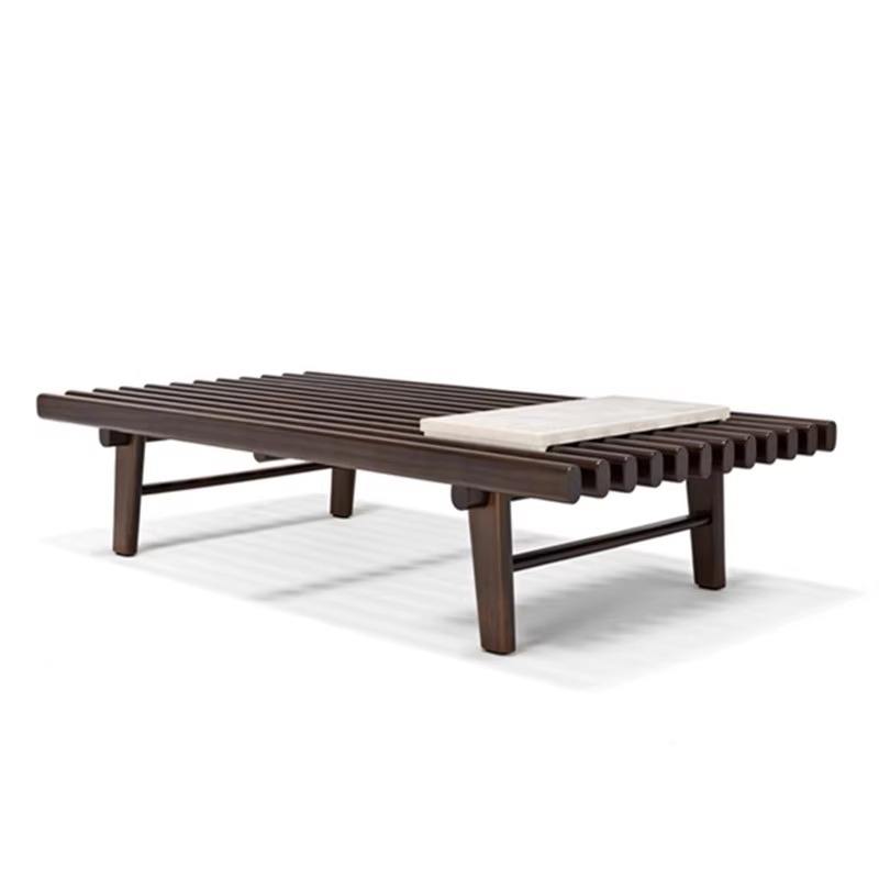 Table basse en marbre avec structure en bois, utilisation intérieure et extérieure