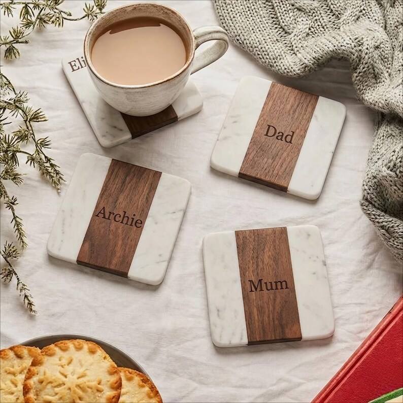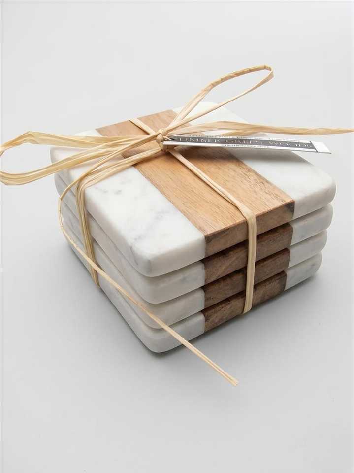 Ensemble de sous-verres en marbre et bois, sous-verres carrés faits à la main, sous-verres en pierre naturelle, bois d'acacia, décoration de table moderne pour la maison