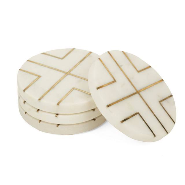 Dessous de verre en marbre avec bandes de laiton Pierre de marbre de luxe de taille personnalisée et incrustation de métal Dessous de verre en pierre Tasse pour thé ou café