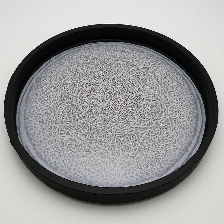 Assiette de présentation en fer ivoire marbré avec tourbillons de crème douce Taches d'or Art moderne Design antique Dîner de mariage luxueux