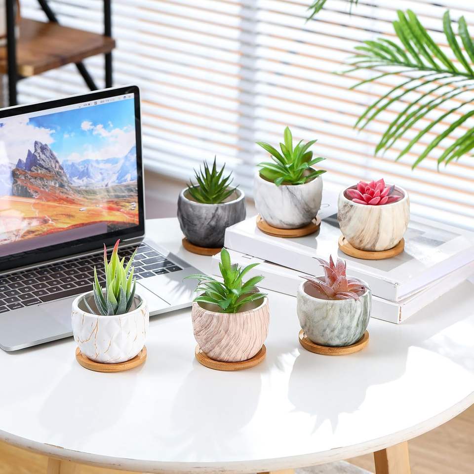 Pot de fleurs en céramique marbrée 3,35 pouces, écologique, léger, pour plantes succulentes, cactus, herbes, avec trou de drainage, finition mate, moderne