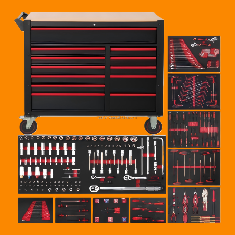 March Expo 471 pièces Remplissez ce chariot de réparation automobile en métal robuste à 7 tiroirs personnalisable pour votre garage, entrepôt ou atelier