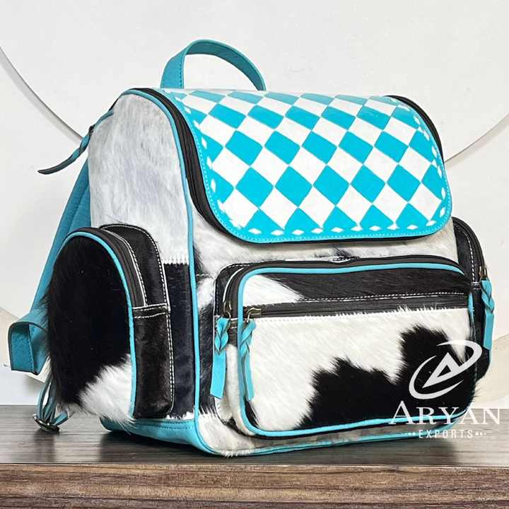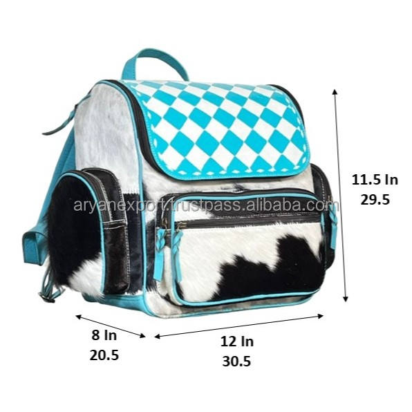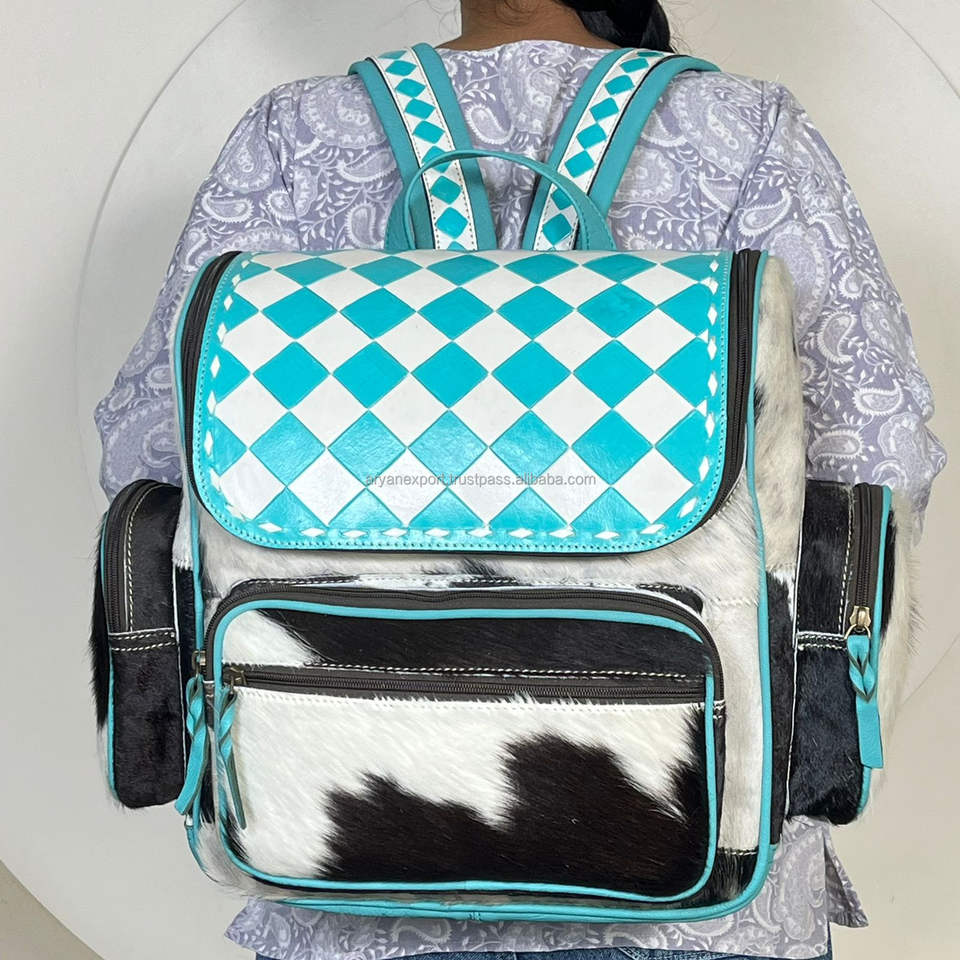 Sac à dos élégant en cuir de vachette véritable à motif à carreaux, style western, idéal pour les couches, parfait pour unisexe - Collection Mars Expo