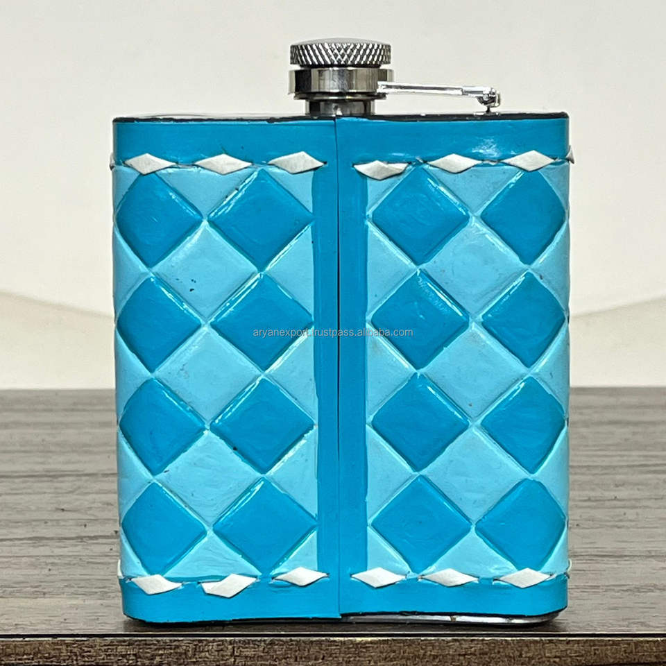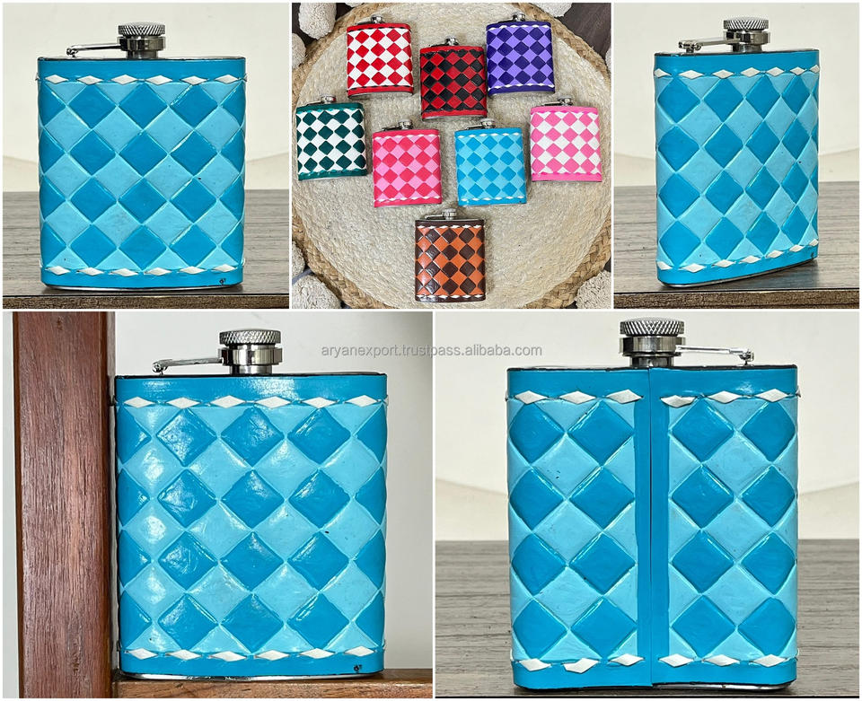 March Expo Hot Selling Customized Checkered Cow Leather Stainless Steel Trendy Unique Hip Flask Promotional Gift for Men & Women