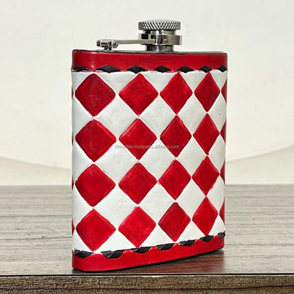 Flasque à alcool en cuir à carreaux travaillé à la main avec acier inoxydable