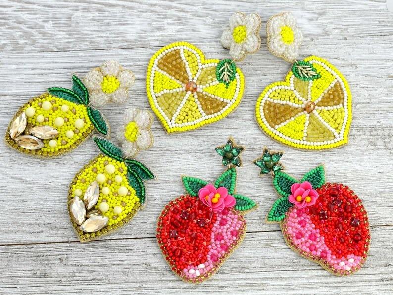 Mardi Gras Beaded embroidery Earrings for Women New Drop Product with King Cake Design Featuring Pearl Main Stone Seed Beads