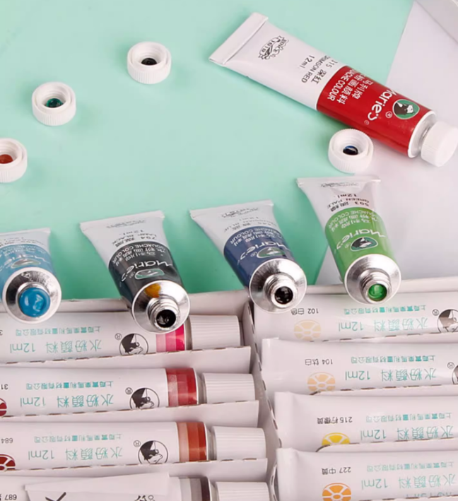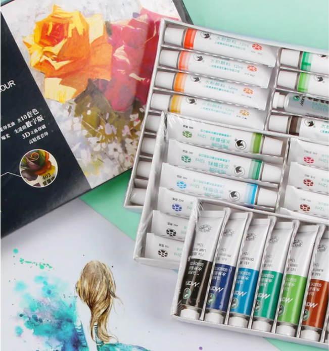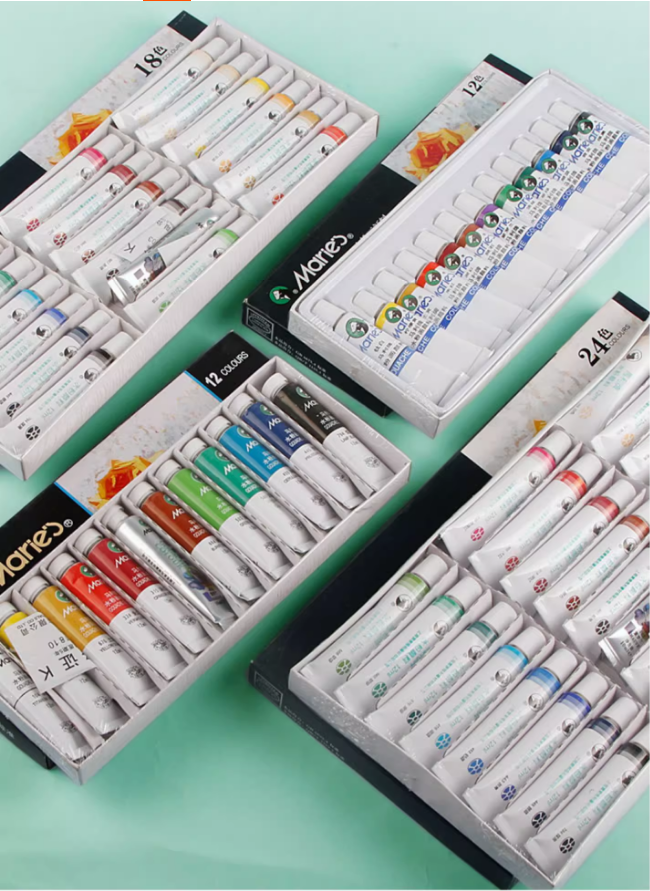 Marie's Brand 24-Color 12ml Tubes Gouache Set de Peinture pour Enfants Débutants Primaire Élèves Peint à la Main Pinceaux Liquide