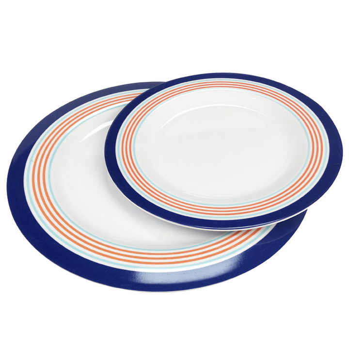 Packaging Details:Marin Basics Banded Rim Stripe Melamine Navy Blue Tableware Dinner & Dessert Plate Sets