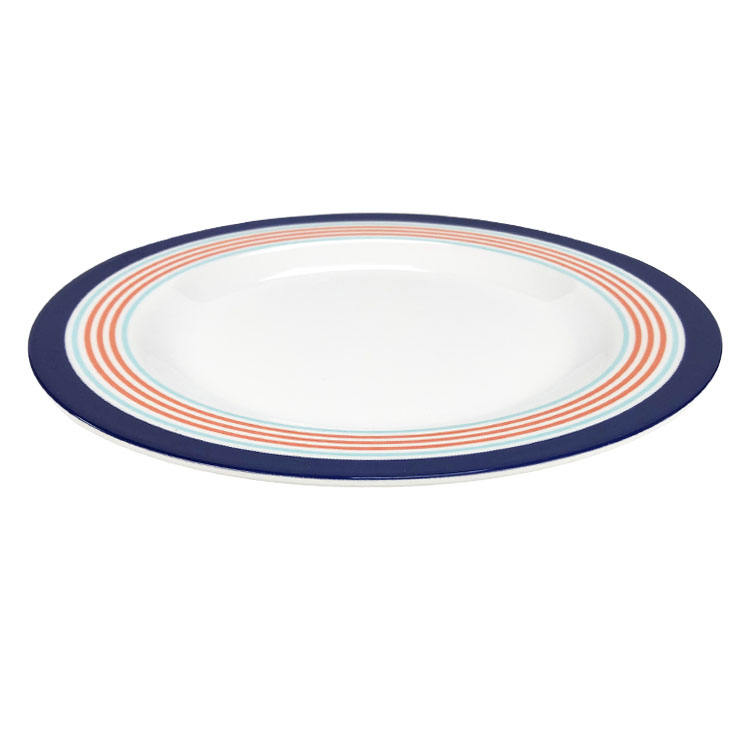 Nom du produit:Assiette à dîner bleu marine en mélamine à rayures à bords bandés Marin