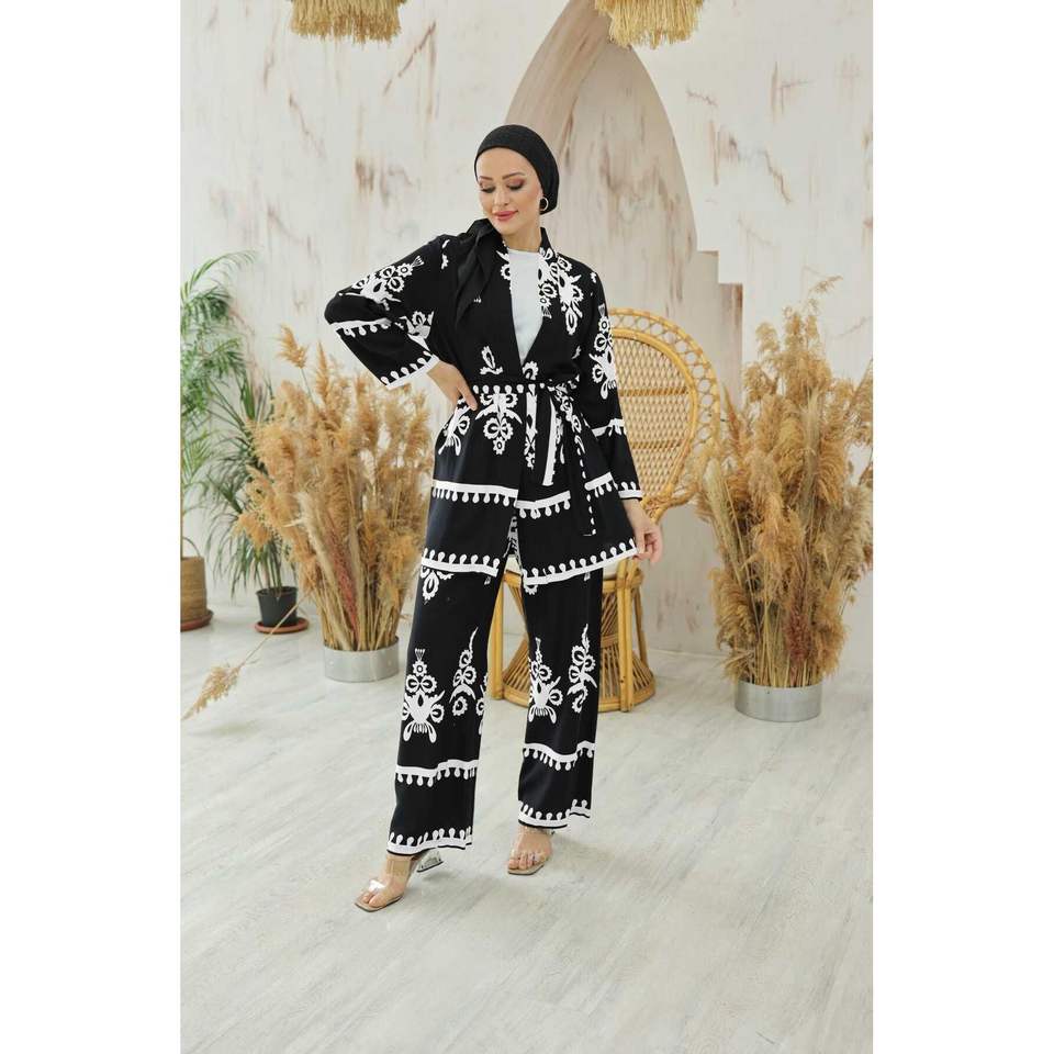 Marina Ensemble 2 pièces hijab en viscose à motifs Ensembles pour femmes noires