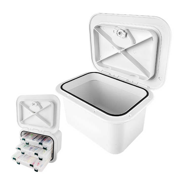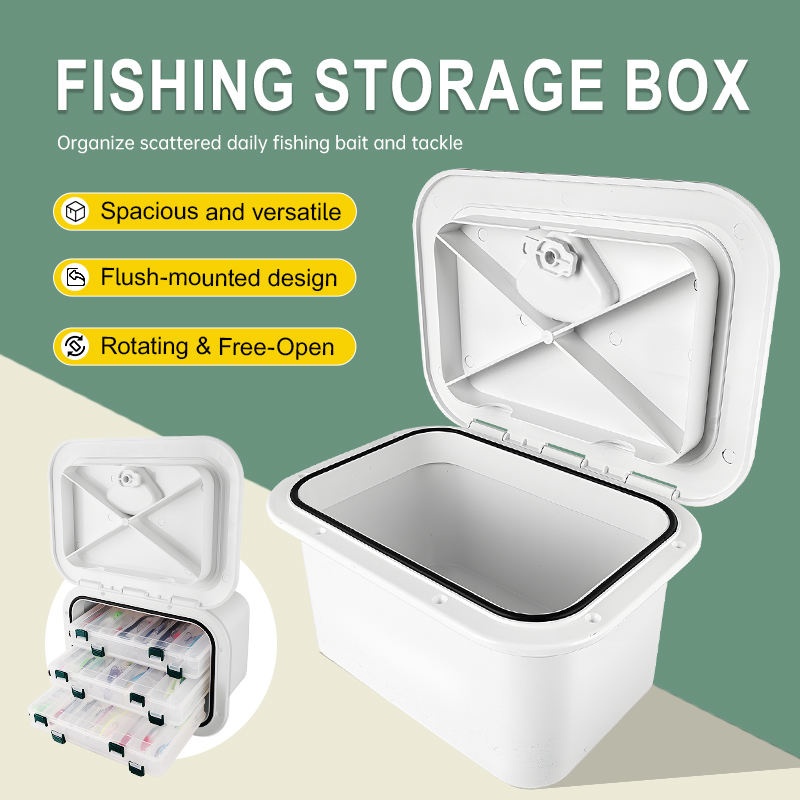 Boîte de rangement pour la pêche en mer avec verrou rotatif, trappe de pont de bateau, bac à poissons vivants avec couvercle et trou de drainage pour yacht et camping-car