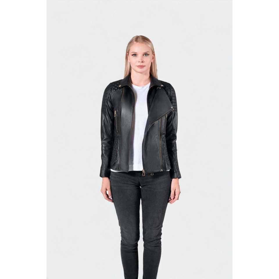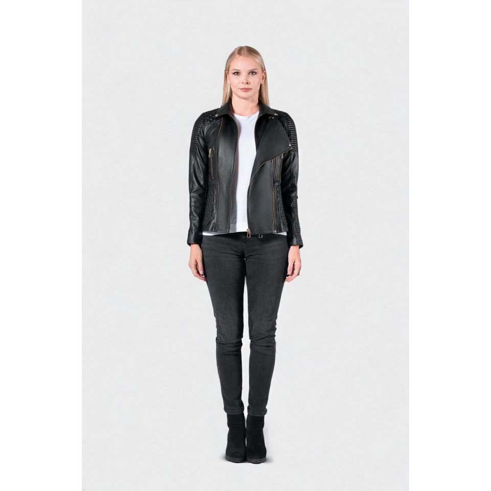 Vestes en cuir pour femmes Marka avec fermetures éclair YKK, quincaillerie dorée, doublure 100% acétate
