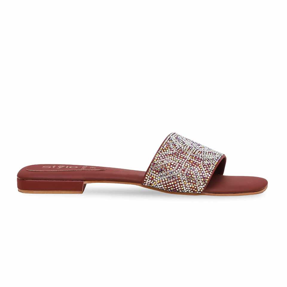 Pantoufles Maroon à imprimé animal FN7834
