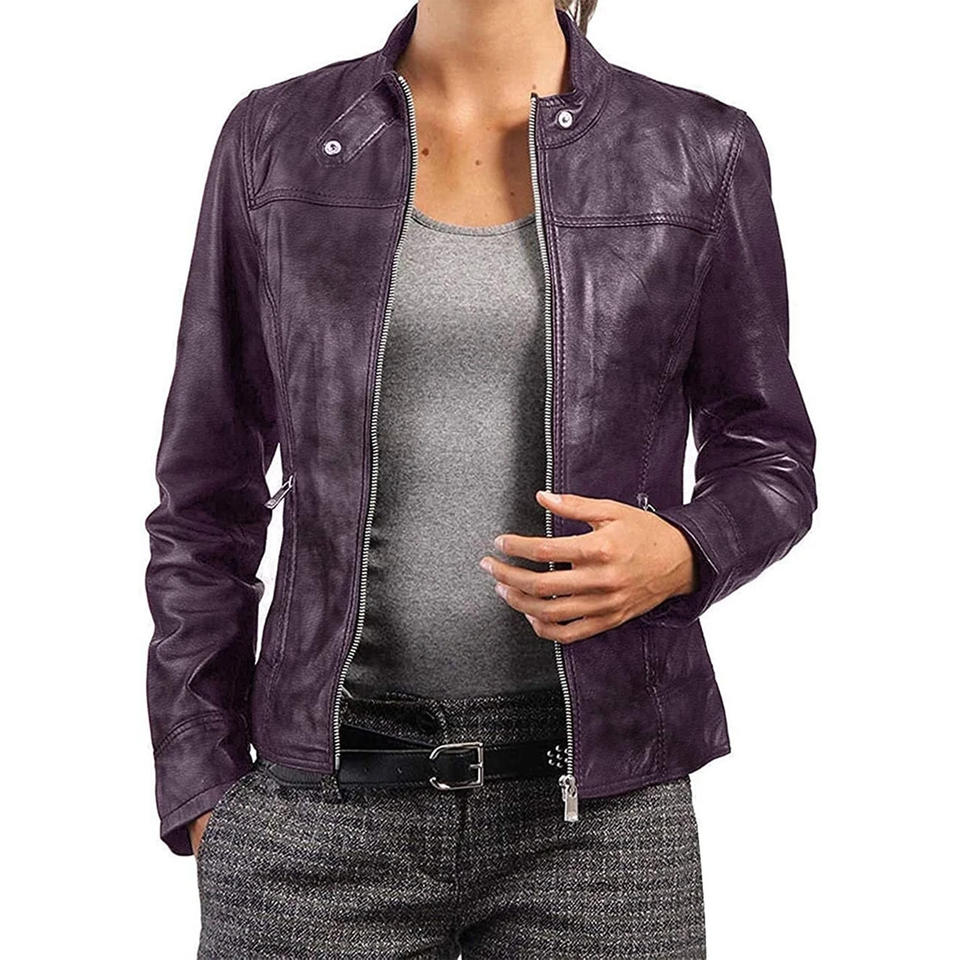 Marron Qualité Prix Qualité supérieure Conception personnalisée Veste en cuir véritable pour femmes de taille adulte Veste en cuir pour femmes