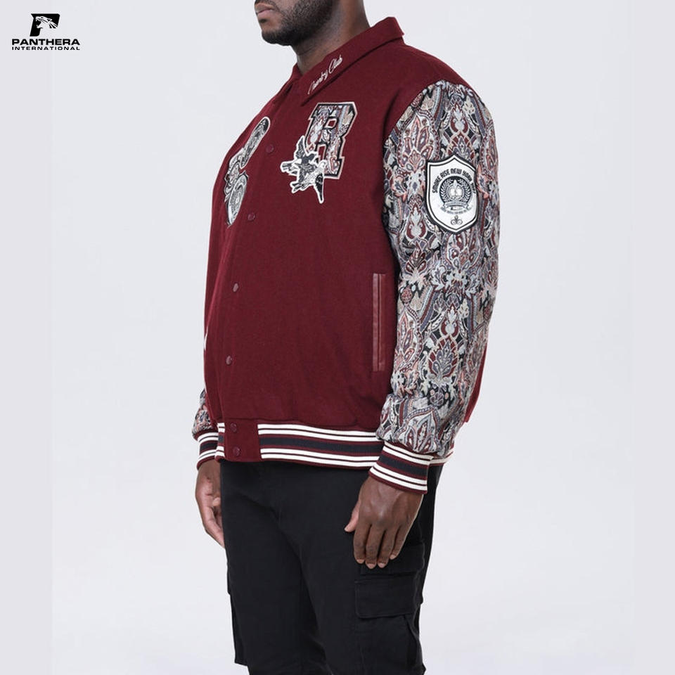 Custom Chenille Embroidered Vintage Heated Unisex Baseball Jacket Maroon Wool Printed Sleeves Letterman Varsity Jacket Stand