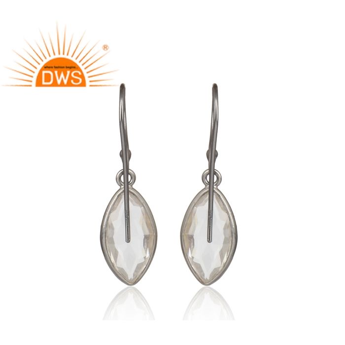 Boucles d'oreilles en cristal de quartz transparent, argent 925 plaqué rhodium blanc, fournisseur de bijoux