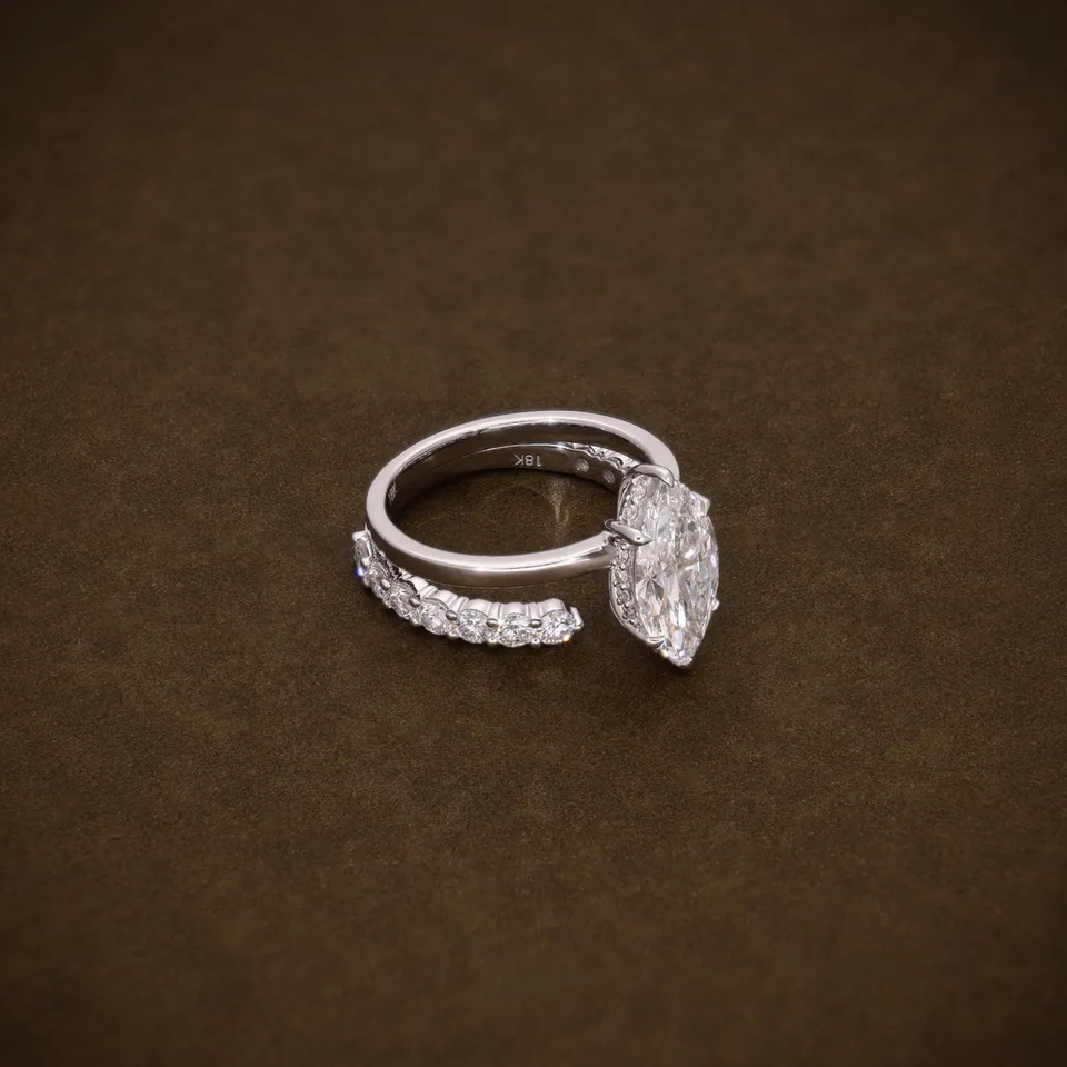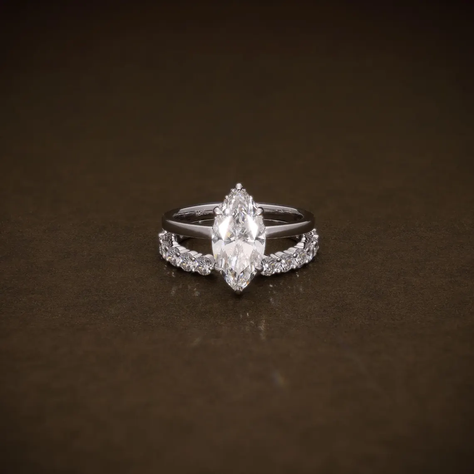 Bague de fiançailles en diamant de laboratoire taille marquise avec alliance assortie en diamant, ensemble de mariage en diamant de laboratoire certifié IGI