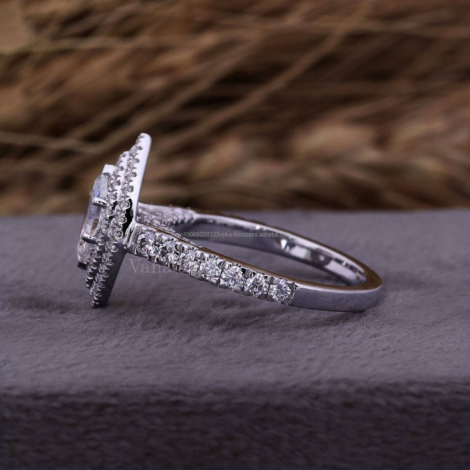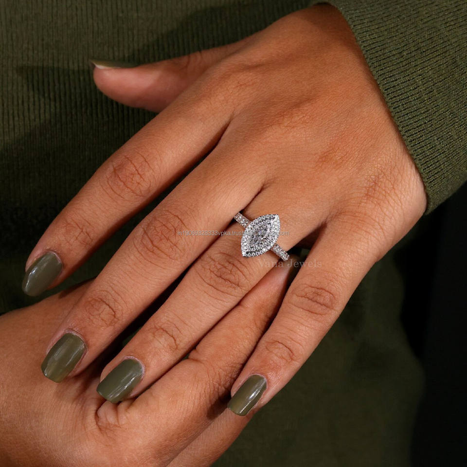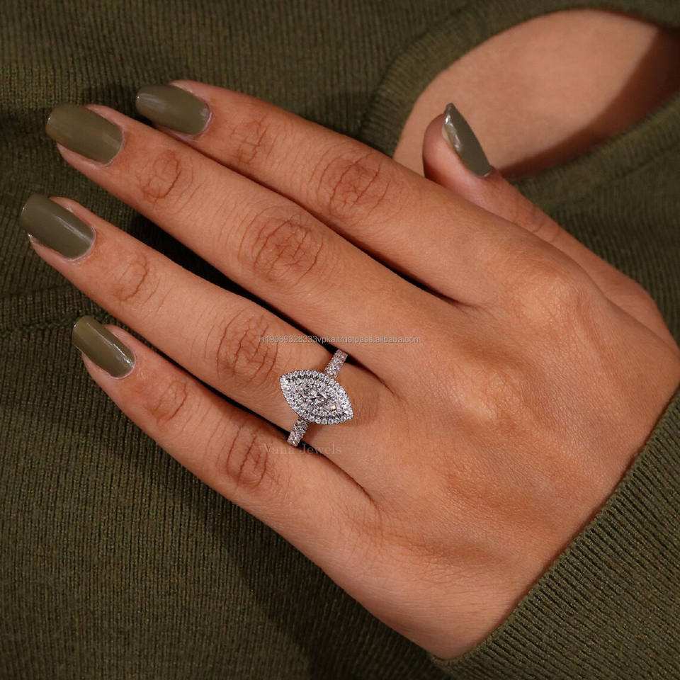 Bague de fiançailles en diamant de taille marquise 18K or blanc massif Double Halo pavé réglage IGI certifié cadeau de mariage parfait