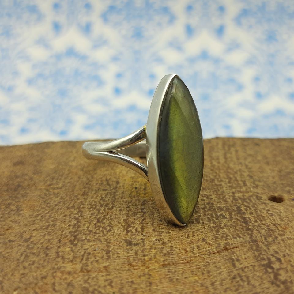 Bague en Labradorite en forme de marquise en argent fin fait à la main bijoux de mariage de haute qualité Style Boho perle de diamant pour
