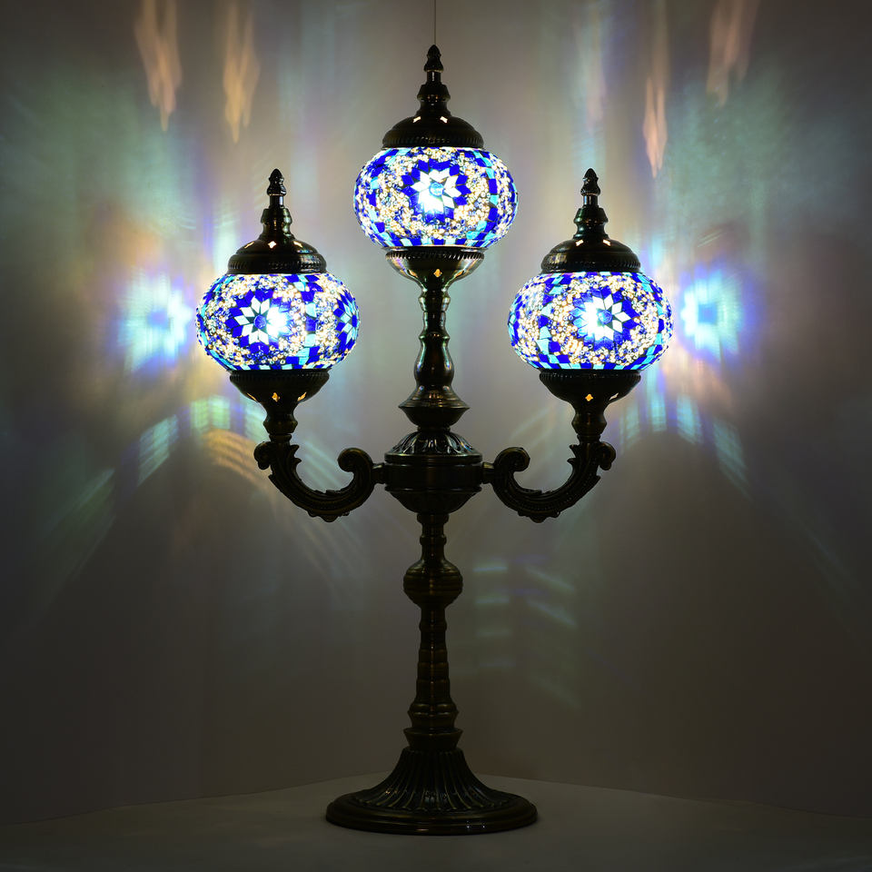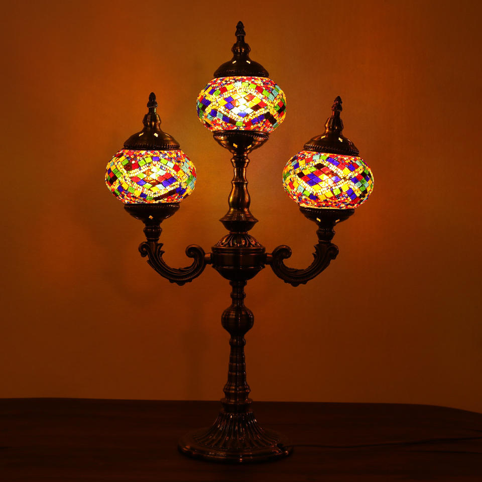 Lampe de table marocaine Marrakech, faite à la main, 3 globes, mosaïque turque en verre, lampe de bureau ottomane en mosaïque