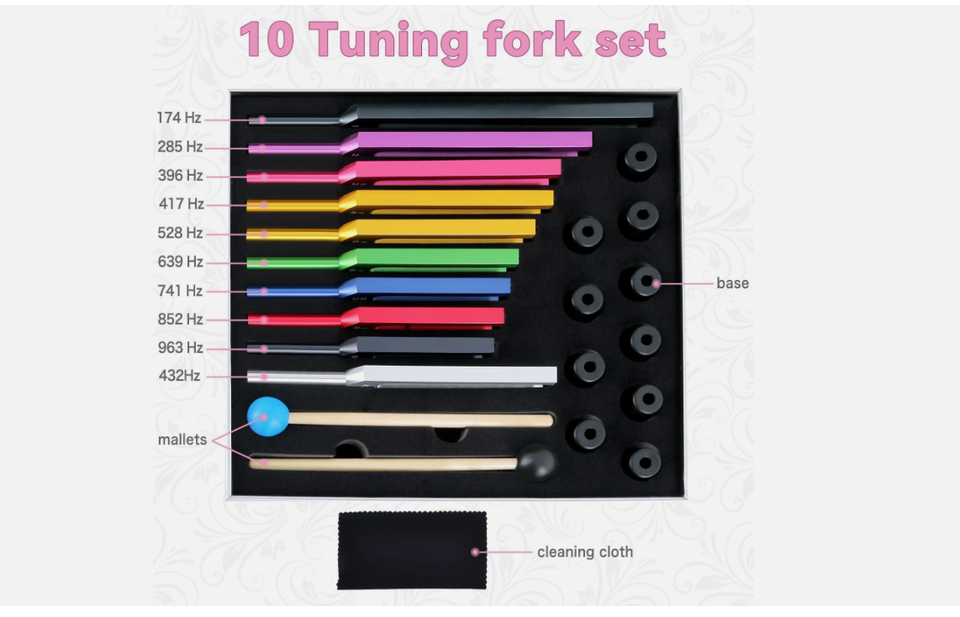 Ensemble de diapasons à 10 couleurs Mars International, ensemble de diapasons pour chakras, en alliage d'aluminium