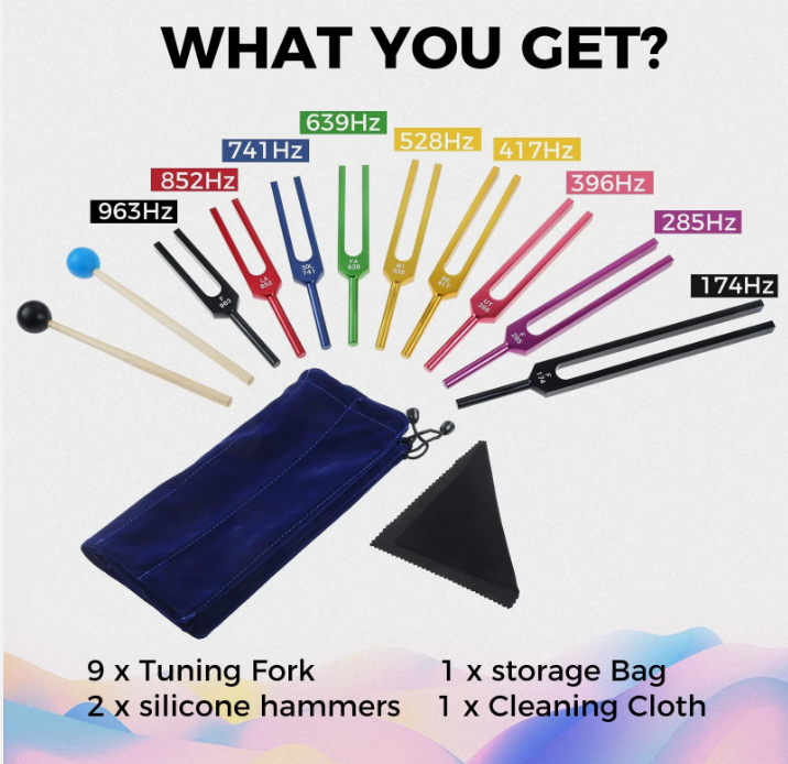 Mars International Ensemble de 9 diapasons Solfeggio pour la guérison, 9 colorés, 9 colorés..