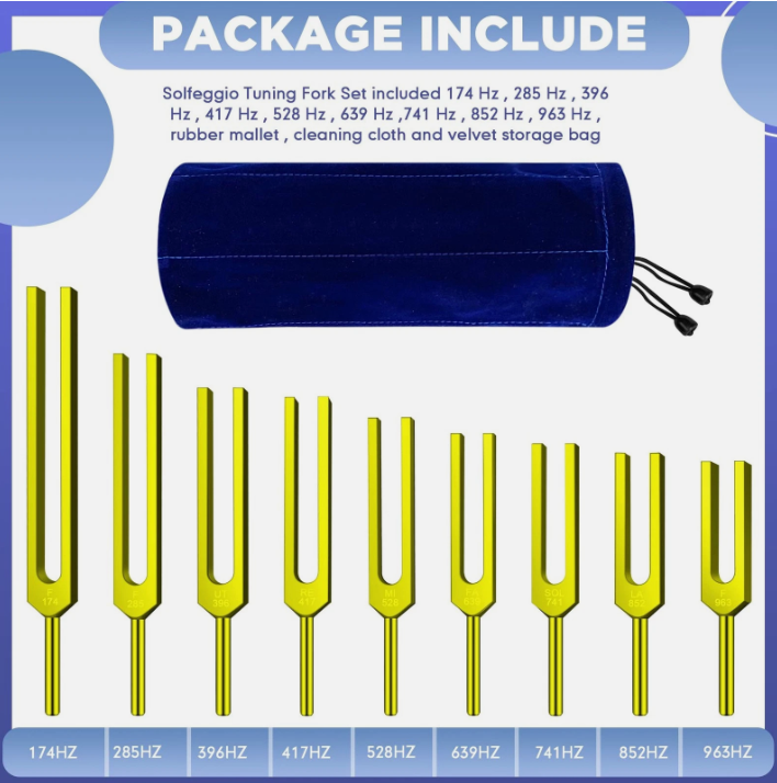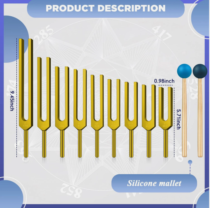 Ensemble de diapasons Solfeggio de Mars Manufacture - 9 diapasons parfaits pour la guérison du DNA, Ch...