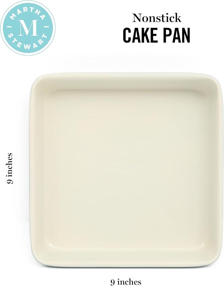Moule à gâteau carré antiadhésif en acier au carbone de 9 pouces, résistant au four, de la marque Martha Stewart Gallen - Teal, durable pour la cuisson de gâteaux, brownies et desserts