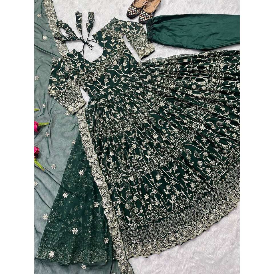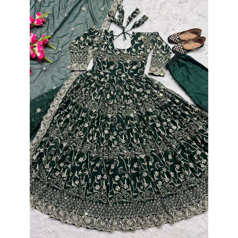 Maruti Fashion Beautiful Evening Party Wear Green Anarkali Gown Fancy Dupatta Elegant Pent Special Occasions Size L 950g