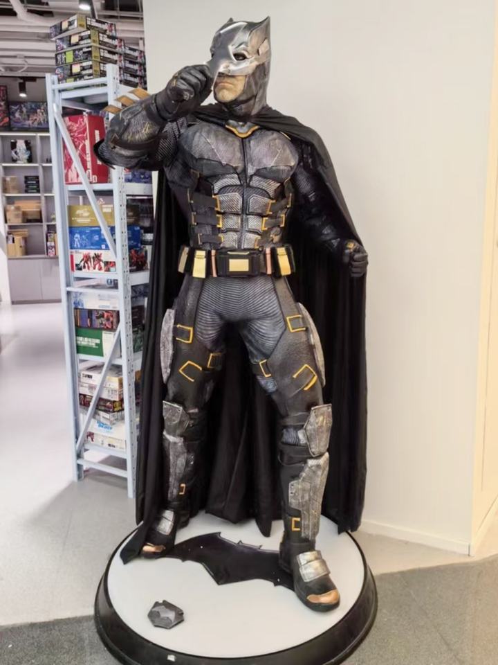 Sculpture en fibre de verre à l'échelle 1:1 de Batman, Iron Man et Spider-Man de Marvel, ornement de sol fait à la main pour la décoration des médias sociaux