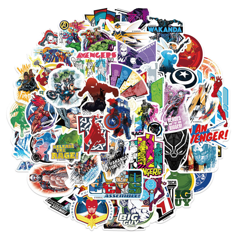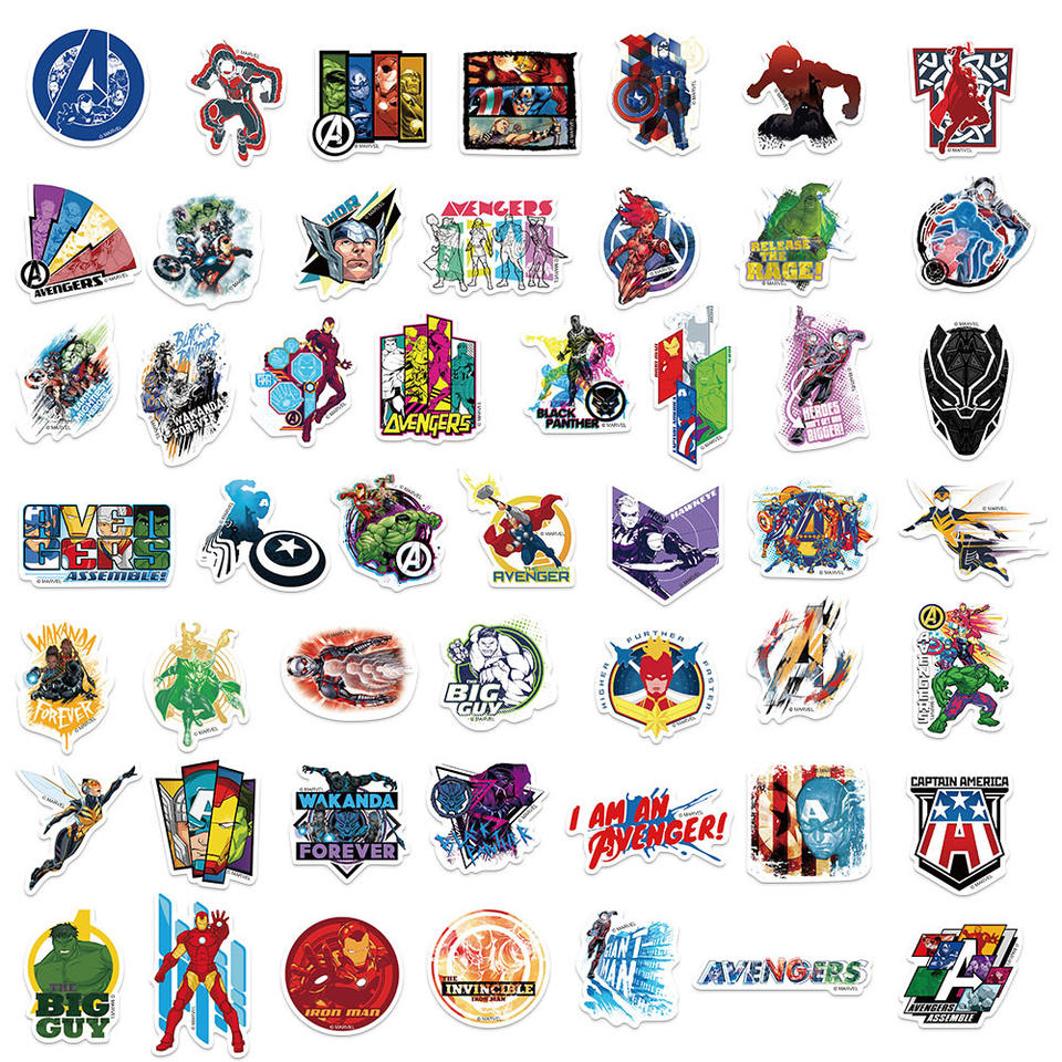 Autocollant de dessin animé Marvel Cool Iron Bat Spider Man Waterproof Durable Cartoon Sticker Phone Case Cup Bagages Decoration
