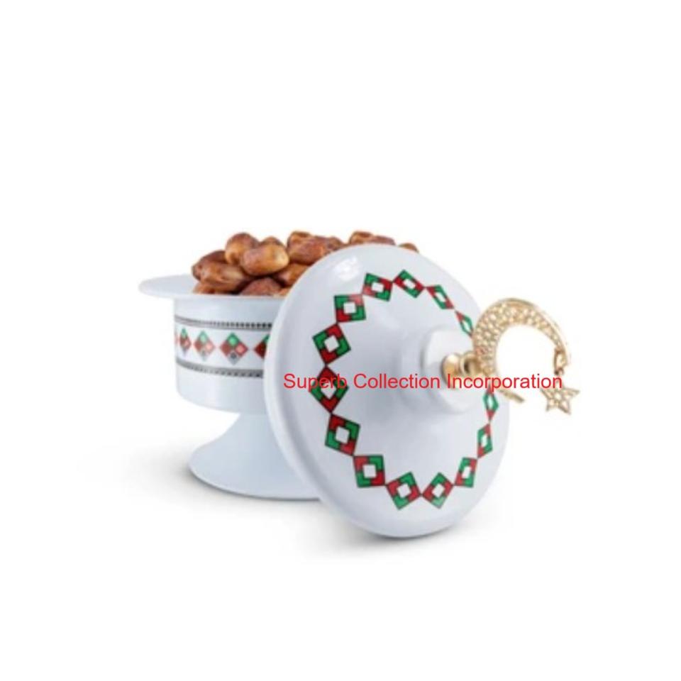 Merveilleux Design Plaqué Or Dates Bol De Service Avec Couvercle Bonbons En Métal Bol De Service Pour Le Ramadan Et La Décoration Intérieure Prix Le Moins Cher