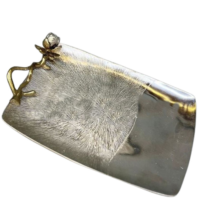 Plateau d'appoint de table en aluminium plaqué or au design irrégulier en forme de feuille, pour cuisine et salle à manger