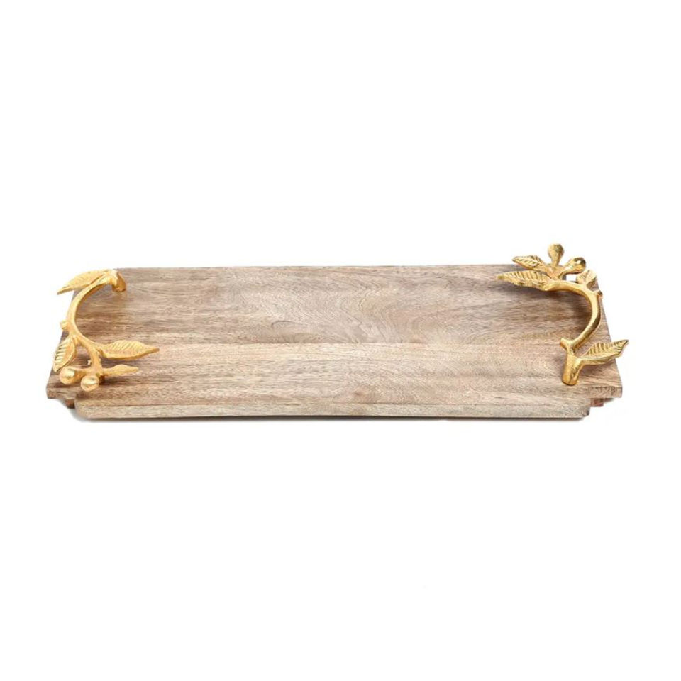 Plateau en bois de grande taille au design merveilleux avec poignée en forme de feuille Plateau de service parfait pour servir des collations Plateau à dessert au café