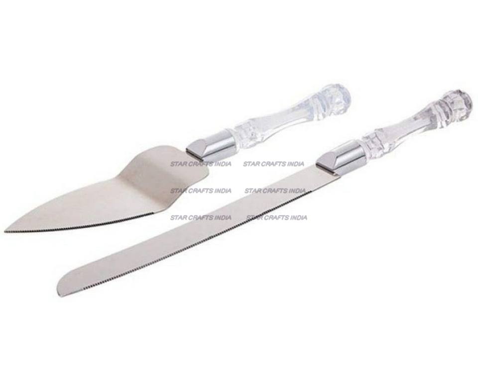 Merveilleux Design Restaurant Maison Dessert Gâteau Pâtisserie Serveur En Acier Inoxydable Avec Acrylique Poignée Couteau Et Couteau À Beurre Ensemble