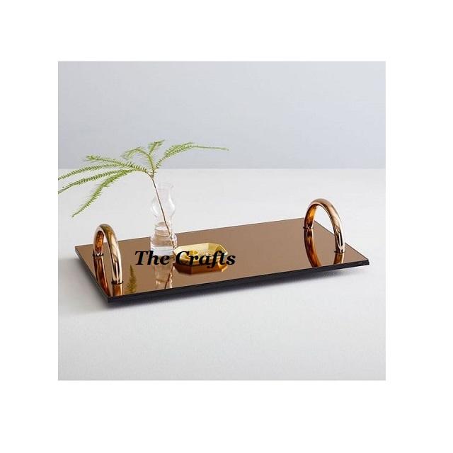 Plateau de service pour collations au design magnifique en acier inoxydable couleur cuivre, plateau de service pour thé et café pour hôtel et usage domestique