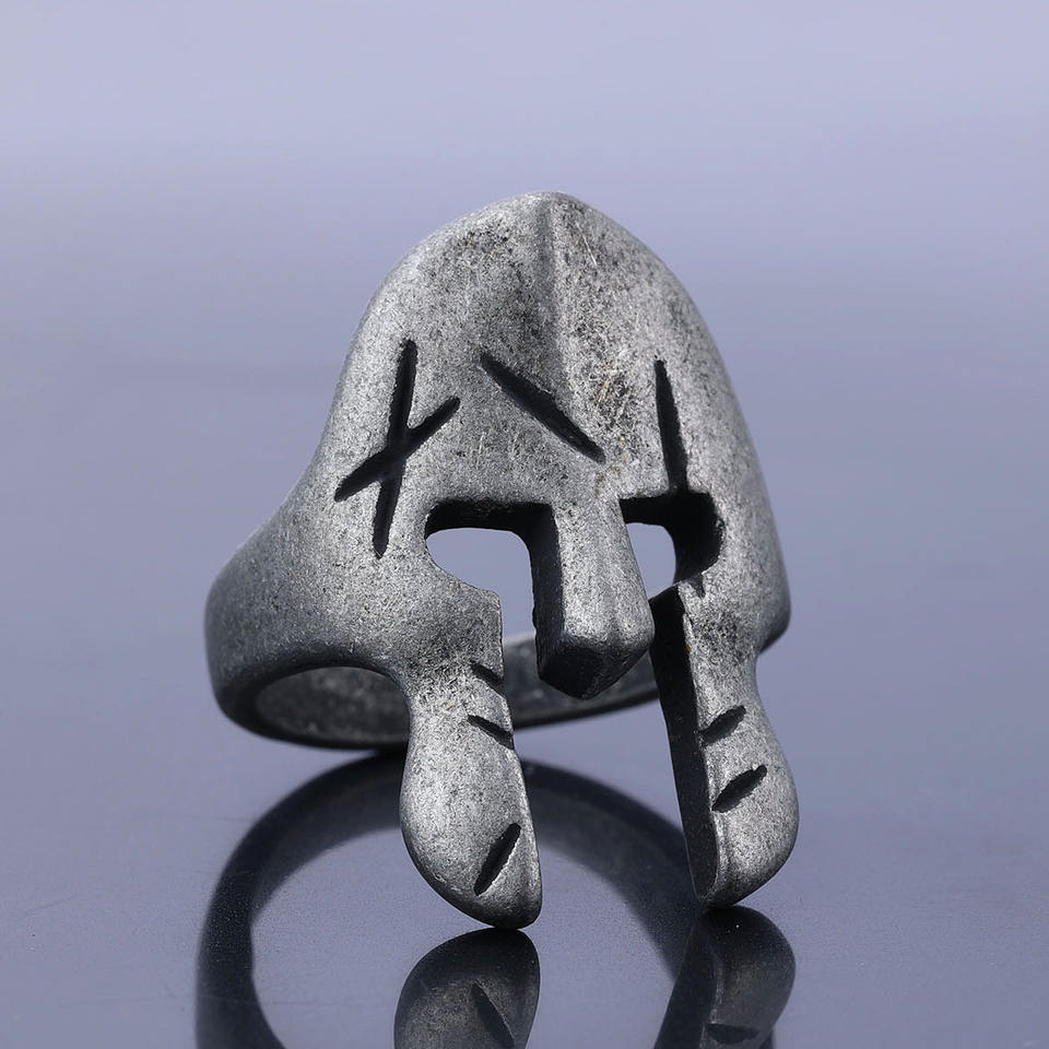 Anneaux de mode en bijouterie fine de style rétro noir, motif guerrier spartiate, pour hommes et femmes