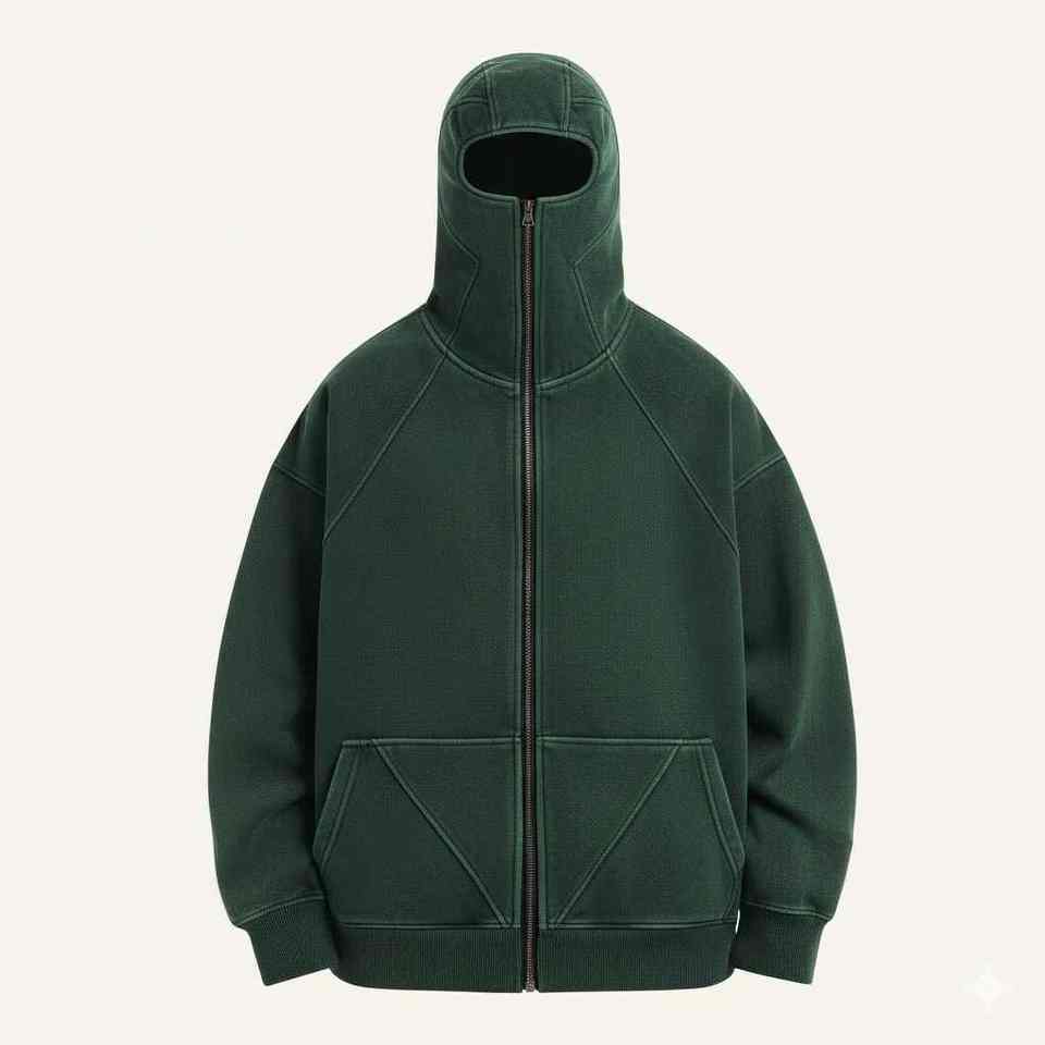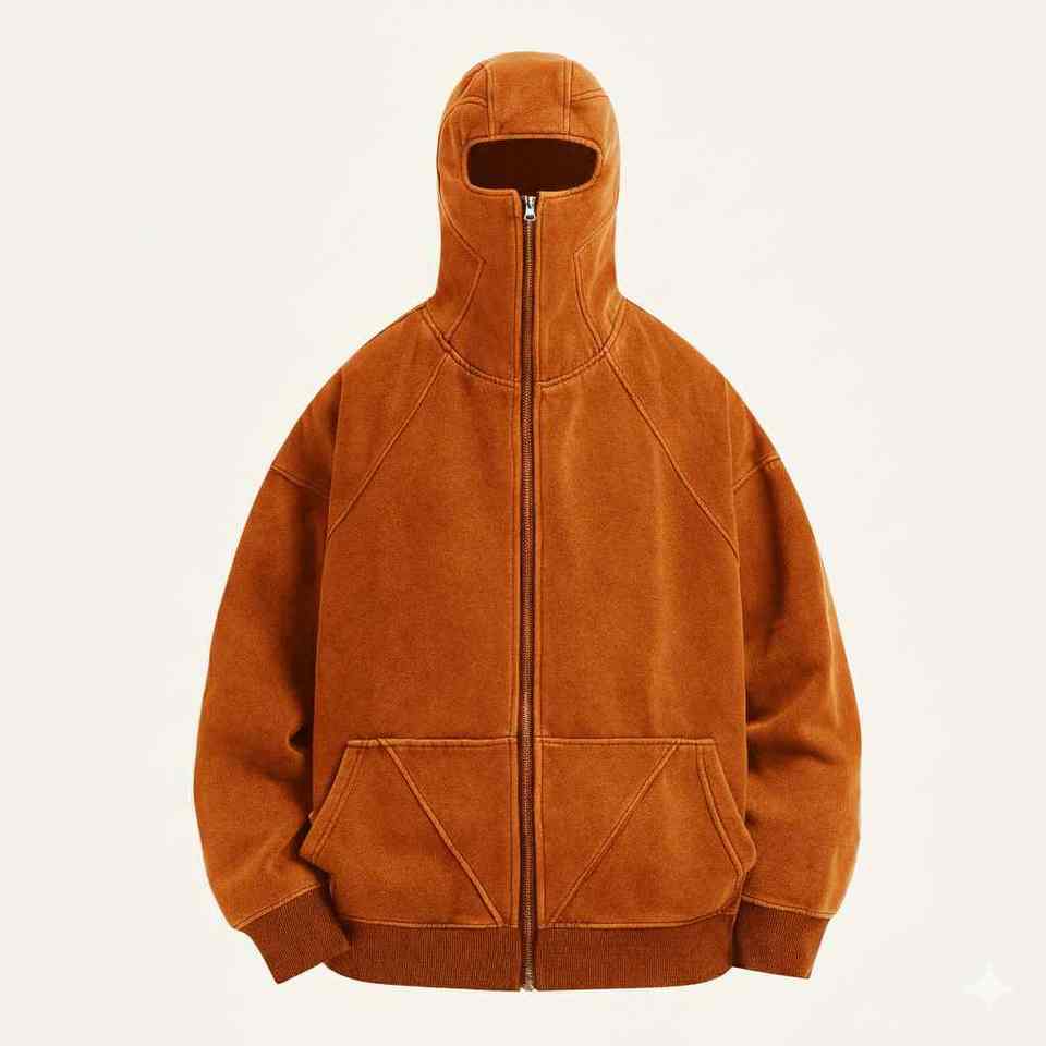 Mask hoodie designed with built in face cover offering cozy warmth comfort protection and modern streetwear style for winterwear