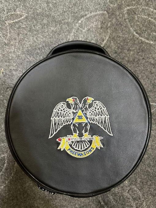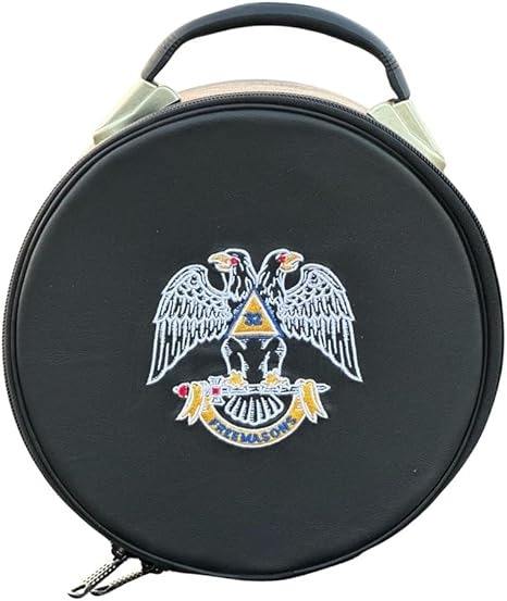 Étui pour casquette maçonnique de 32e degré, noir, sangle solide pour le transport à la main, livré avec 2 fermetures éclair.