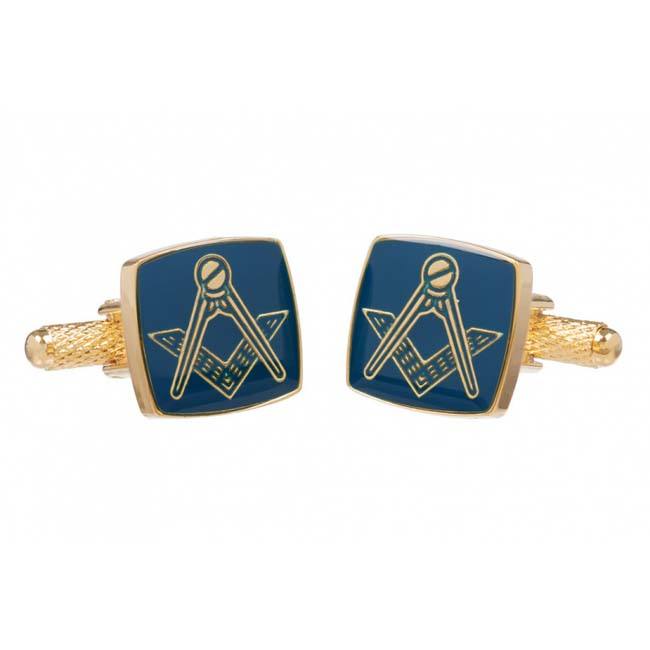 Boutons de manchette maçonniques carrés bleus et boussole dorés