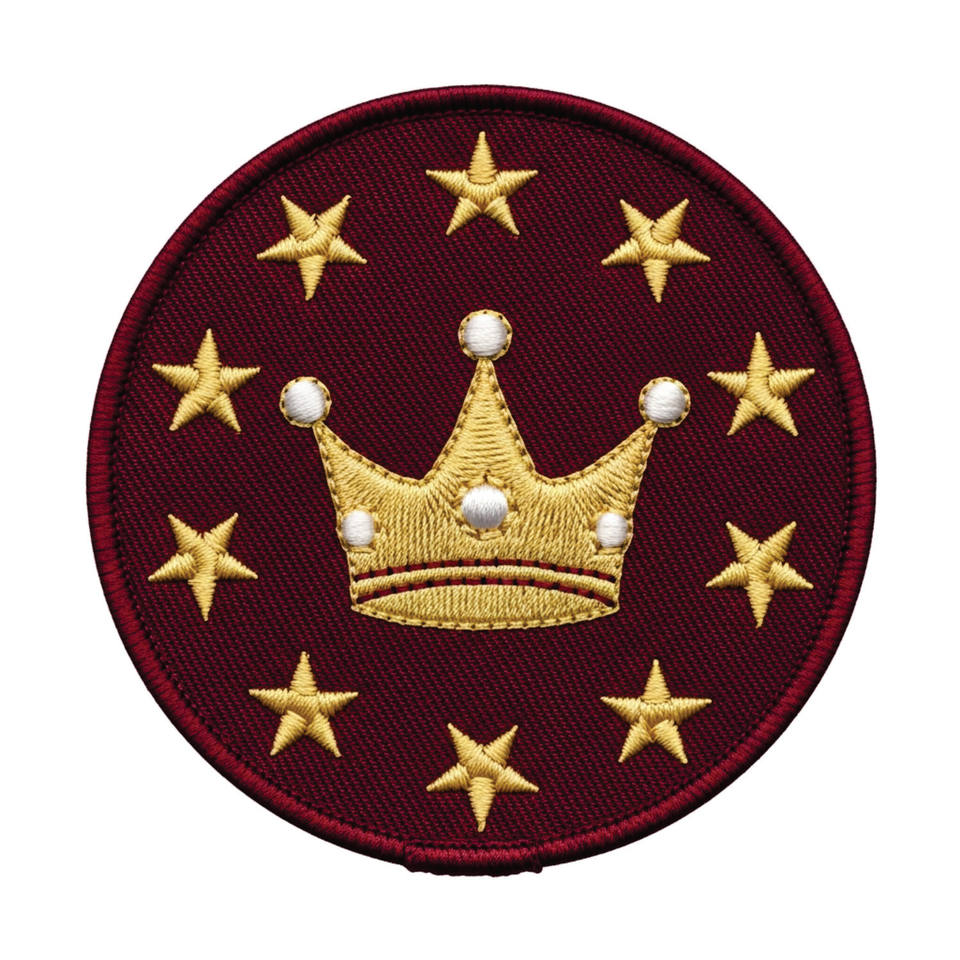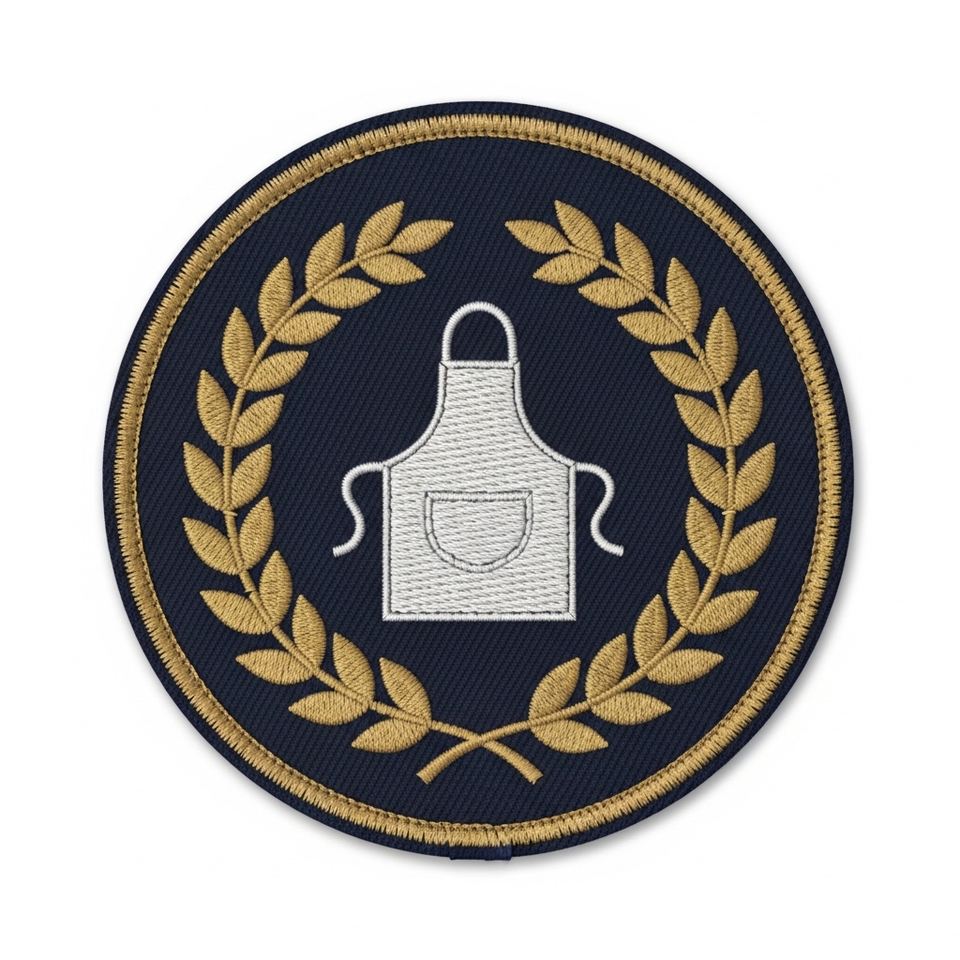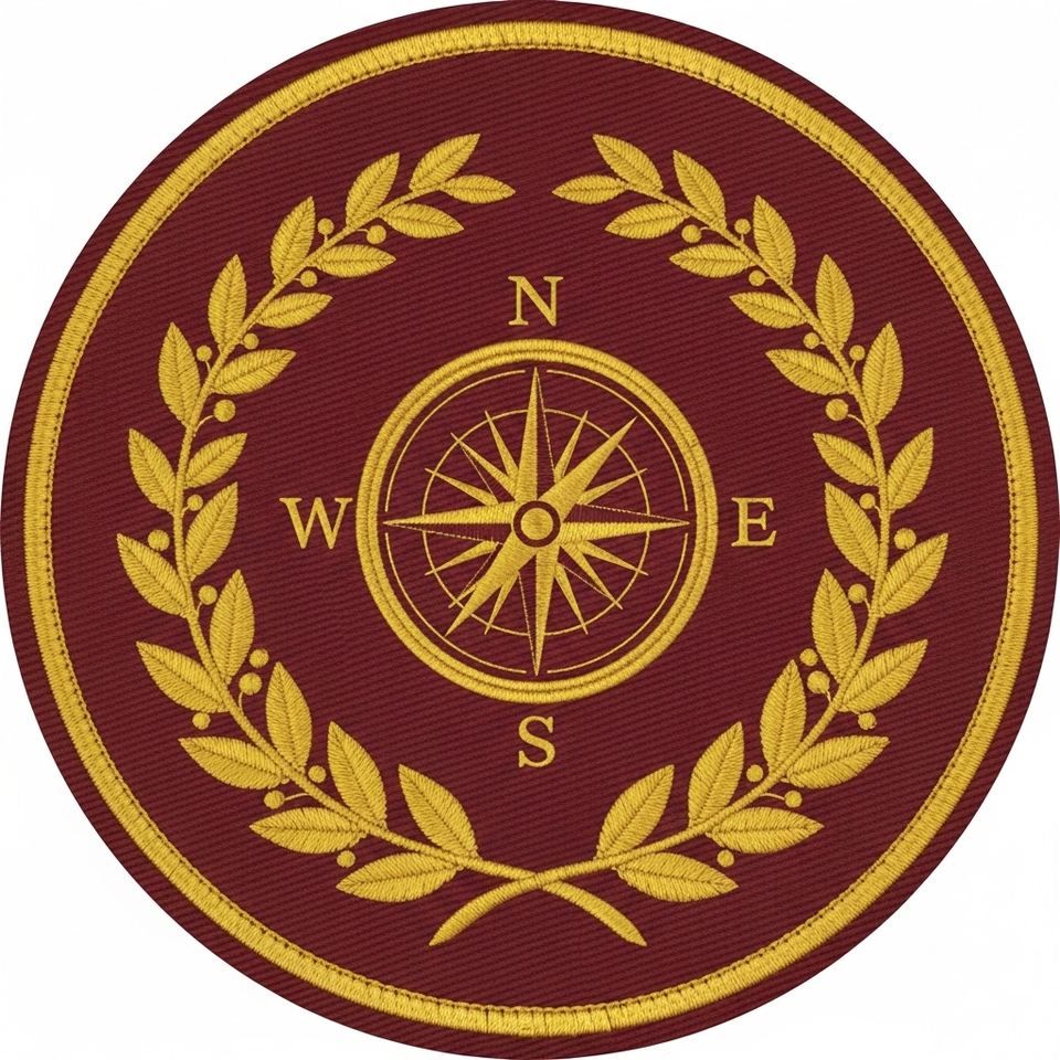 Écusson de Franc-Maçonnerie : Rose de la Vierge et Couronne de Laurier, Brodé Or et Bordeaux, à Coudre, pour Uniforme Rituels et Insignes