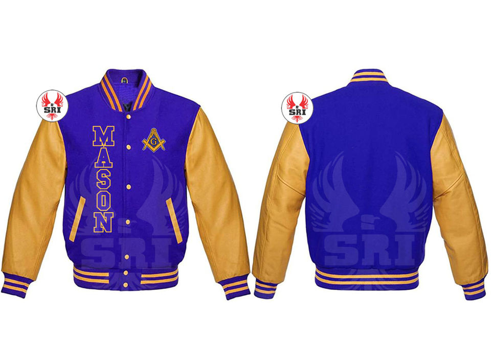 Veste de maçon maîtricien maçonnique sur mesure, veste universitaire personnalisée | Veste universitaire en laine avec manches en cuir, style Regalia maçonnique