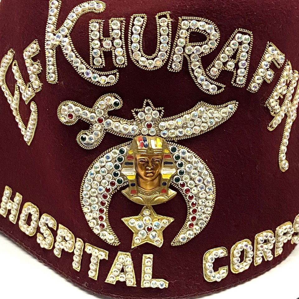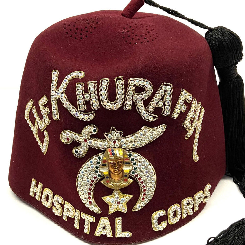 Chapeau d'officier maçonnique avec broderie de strass en fils métalliques, chapeau fez Shriner 100% laine avec pompon, taille personnalisée pour les occasions décontractées