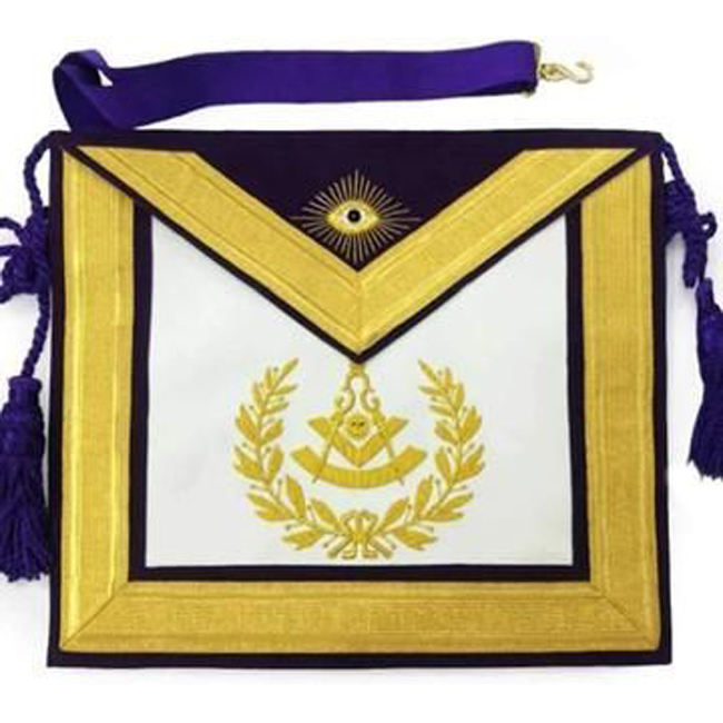 Kit de tablier en cuir maître passé maçonnique avec broderie à la main or et violet