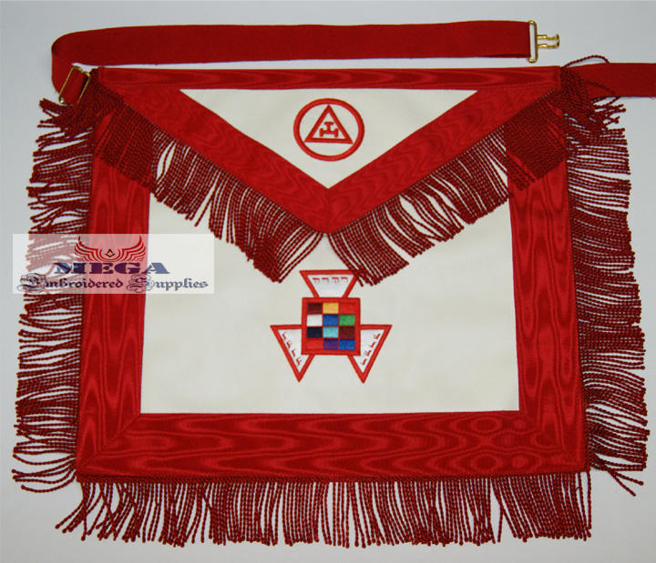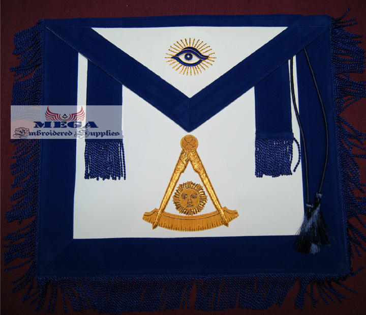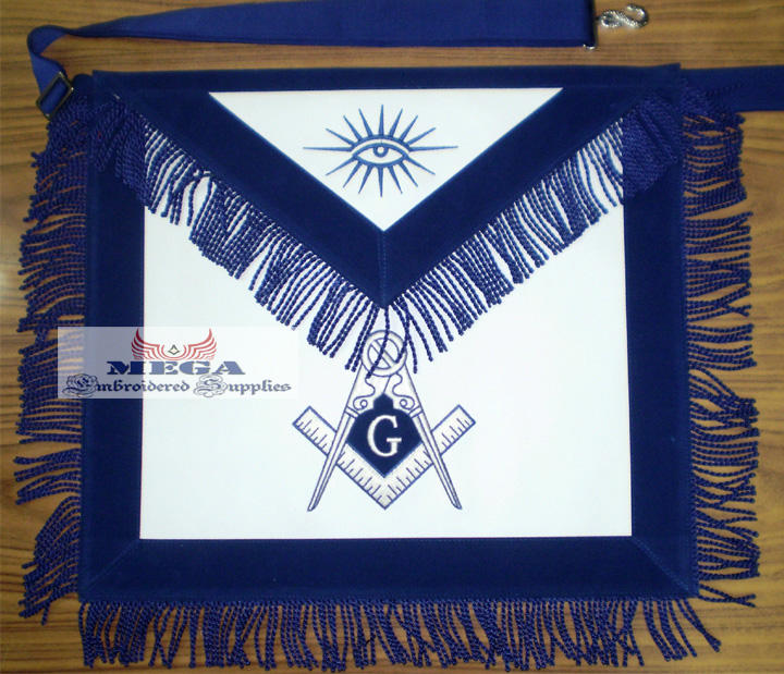Tablier maçonnique, broderie artisanale avec des points de croix complexes, travail d'aiguille léger, forme carrée, imitation
