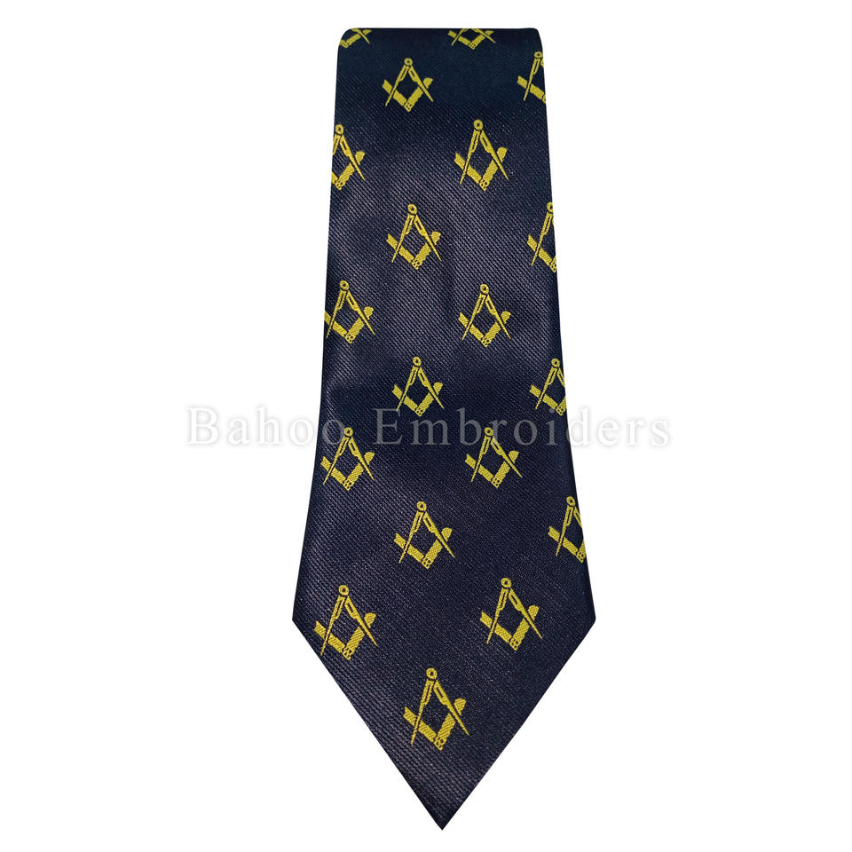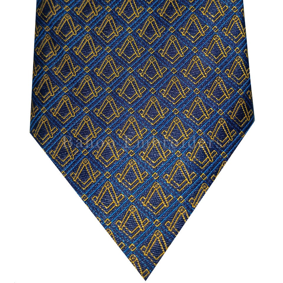 Nom du produit:Cravate bleue maçonnique avec logo carré et boussole