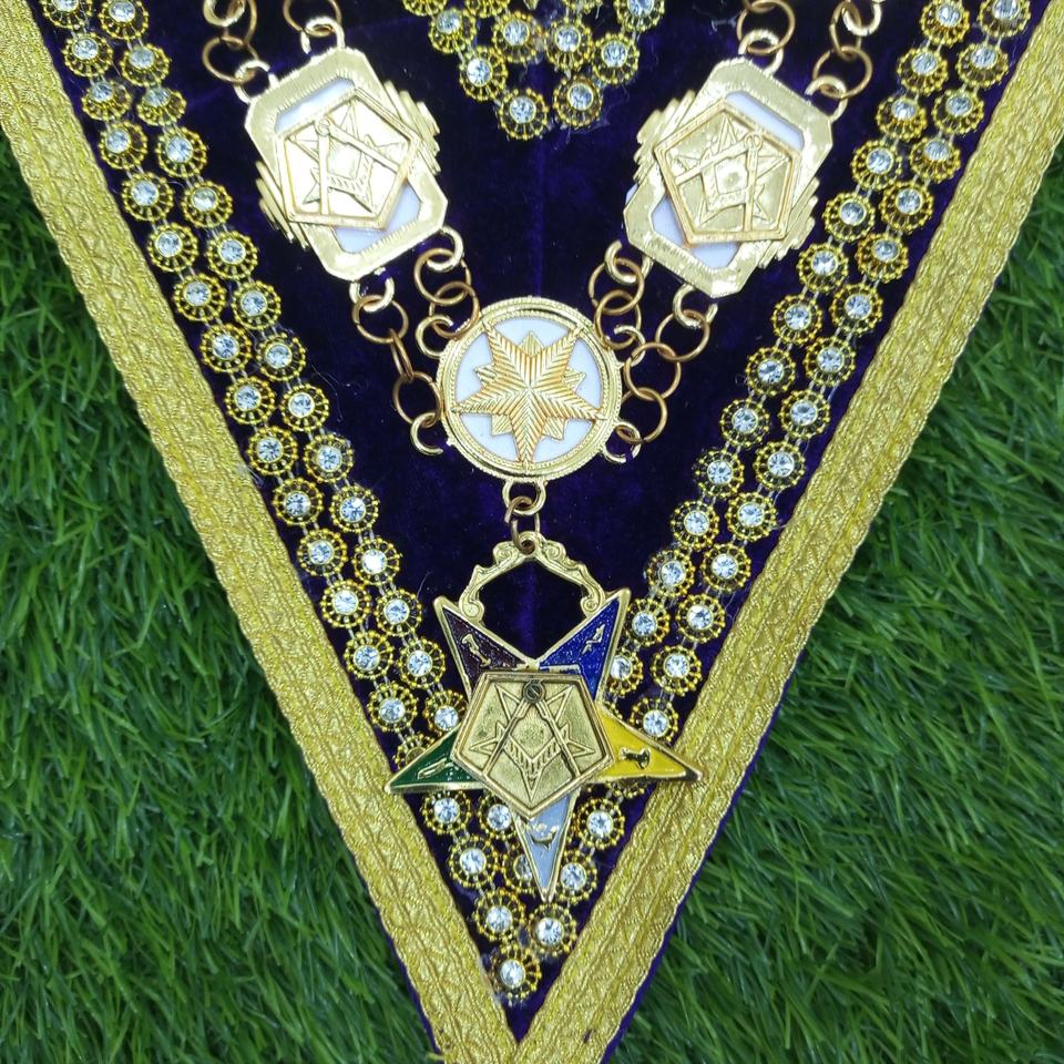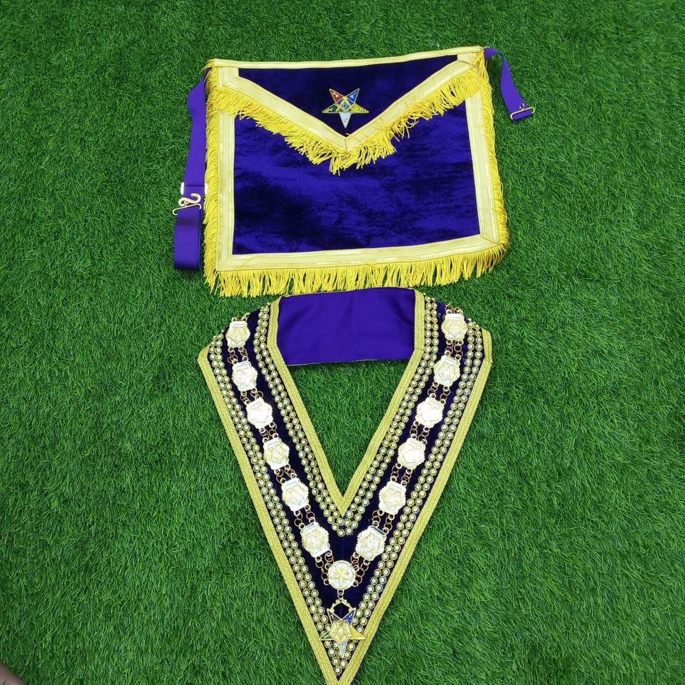 Tablier en velours maçonnique Regalia OES Worthy Patron/Matron avec col perlé